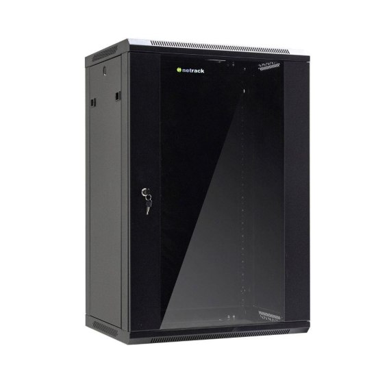 Szafa wisząca 19" Netrack, 18U/600x450mm - czarny, drzwi szklane, otwierane boki NETRACK