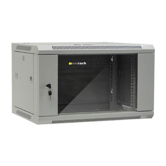 Szafa wisząca 19" Netrack, 6U/600x450mm - szary, drzwi szklane, otwierane boki NETRACK